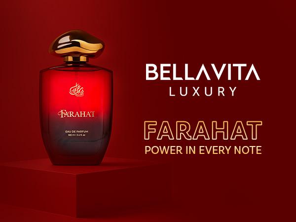 Bella Vita Luxury FARAHAT Unisex Fragrance | EDP Perfume for Men and Women | Amber Top Note | 100 Ml Pack | 3.4 Fl. Oz. | Woody and Amber Notes | Gift for Men and Women | Eau De Parfum