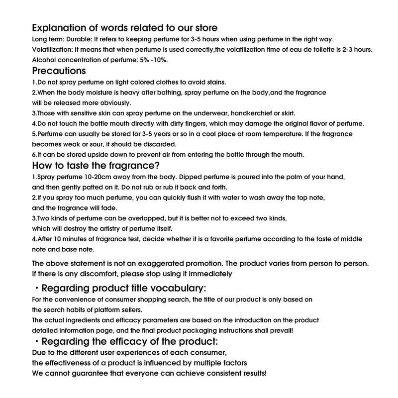【Long Lasting】: Enjoy a long-lasting fragrance with our women's perfume, designed to keep you smelling fresh and lovely throughout the day.